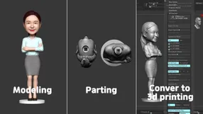 저는 3D 피규어를 비롯해 프린팅용으로 출력할 데이터와 조형물로 제작할 데이터를 제작하고 있으며 박물관 및 카페, 놀이공원 등 여러 지역에 제가 모델링 작업한 결과물들이 설치되어 있습니다. 이 외에도 스캔 데이터 수정 및 유물 복원 등 다양한 데이터들을 제작하고 있습니다. 설계 모델링 툴에서 다루기 어려운 사람이나 굴곡이 심한 캐릭터 및 조형물에 특화된 모델링들을 주로 다루며 치수적인 설계에 제약이 있는 디자인 프로그램에서도 치수화시킬 수 있는 방법에 대해 연구하고 있기도 합니다."